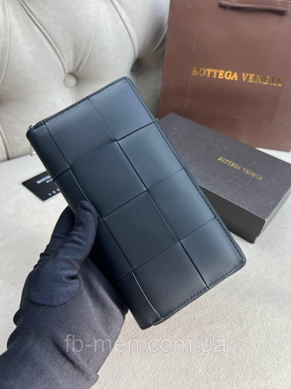 Чоловічий гаманець Bottega Veneta Cassette чорний гаманець на блискавці якість преміум